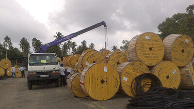 High/Low voltage underground or power cables, ACSR (Lynx, Racoon), AAC & AAAC conductors, Multi pair telephone cables, Co-axial xables and Fiber opticals are imported and supplied Islandwide.