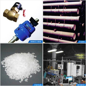 Water Meters, Chemicals (Aluminum Sulphate), PAC, Hydrated Lime, Bleaching Powder, HDPE/DI Pipes, Valves, Pumps ,Filters, Gun Metal Ferrules, Water Meter Test Benches, Chlorine gas, GI pipes are the items supplied by our Water Treatment Items Division.